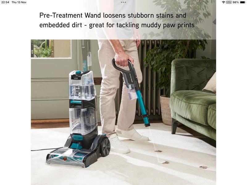 * Tested in Quick Clean mode, results may vary. ◊ Vax Solutions are approved by The WoolSafe Organisation for use on wool or synthetic carpets and upholstery. Not suitable for water sensitive fabrics including silk or velvet. ^When registered at vax.co.uk